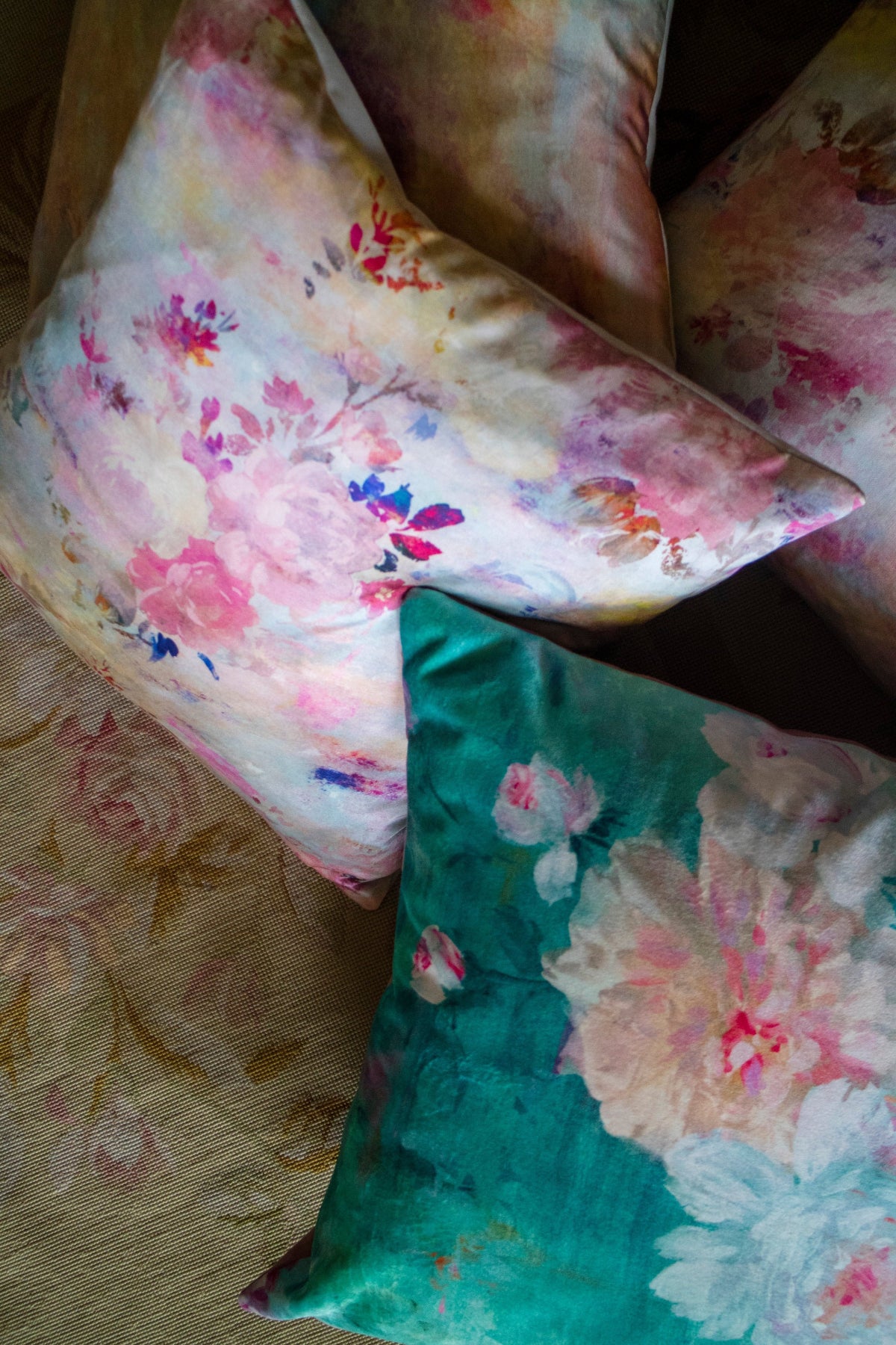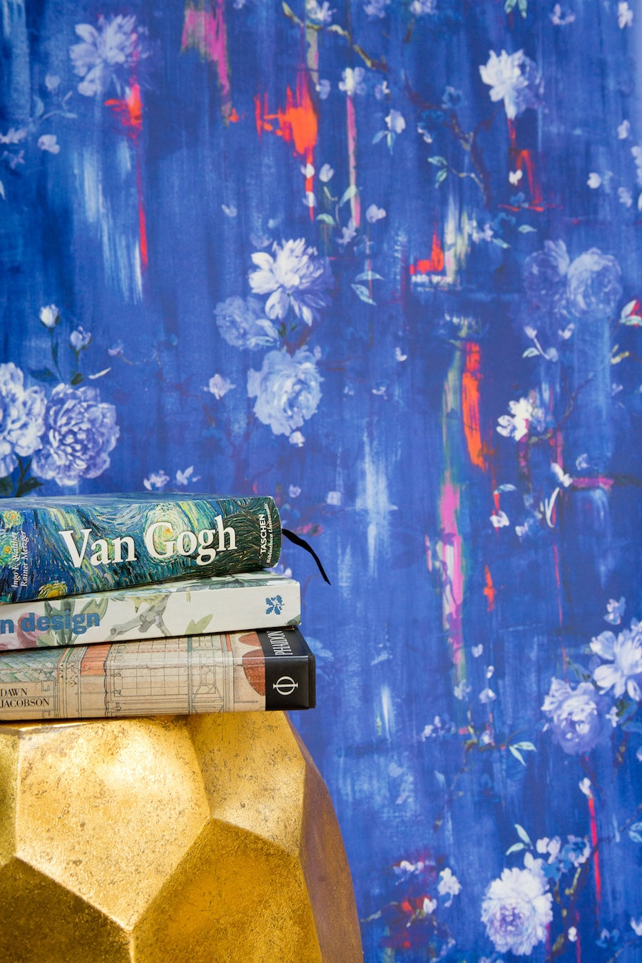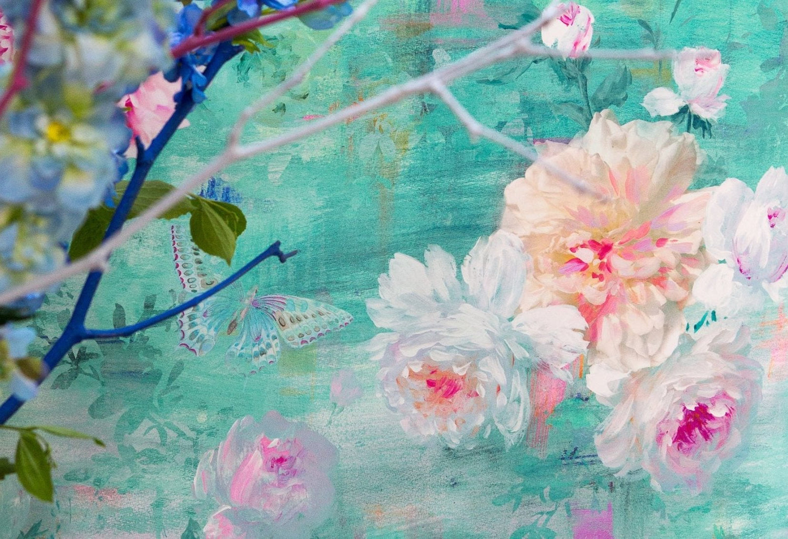 "I have three different designs of Salon Libertine's wallpaper at The Tower, and I love them all in completely different ways. In my lounge is a huge, carved oak Art Nouveau fireplace. The tiles that surround the grate and hearth are glazed in turquoise and deep blue. I decided to paint the walls of the room to match the fireplace tiles. I bought every sample pot of blue paint I could find in Brewers, but I just couldn’t match the rich purple undertone of the tile glaze. Victoria came over, took one look at the tiles and told me I needed ‘Prussian’ by Designer’s Guild. She was right, of course. Everyone who walks into my lounge for the first time comments on how perfect the colour match is. Although I was delighted with my walls, the space above the picture rail was bothering me. It looked ‘unfinished’ in white, but the ‘Prussian’ paint was too bright to take right to the top of the wall. I’d also recently acquired a couple of bright pink Chesterfield sofas - an impulse purchase that would need to be brought into the room’s colour scheme. Victoria mentioned that the flowers in her Salon Libertine wallpaper design ‘Nature as Art’ were a purple-toned blue and would complement the walls and tiles. Coincidentally, the touch of pink in ‘Nature as Art’ was exactly the same shade as my new sofas, so it really was the most perfect choice! Filling the gap between the picture rail and the ceiling with the beautiful Salon Libertine wallpaper instantly pulled the whole room together and created an ‘interior-designed’ look that I could then build on with other furniture and accessories. It’s my favourite room in the house."