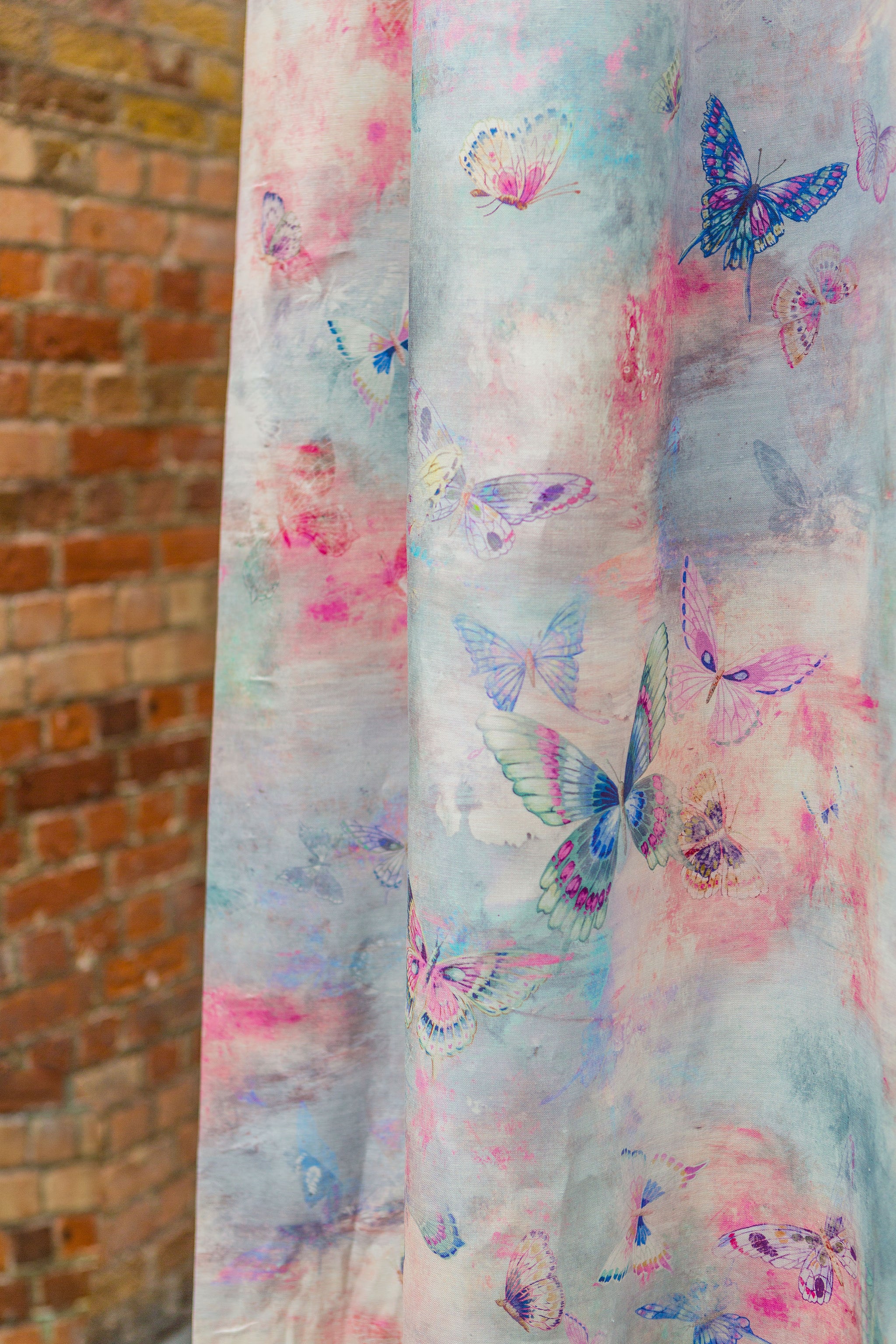 Insouciant butterflies dance gracefully through pastel coloured atmospheric vapours. A dreamily romantic design inspired by Turner’s late skyscapes, and the melody of Debussy’s ‘Rêverie’.