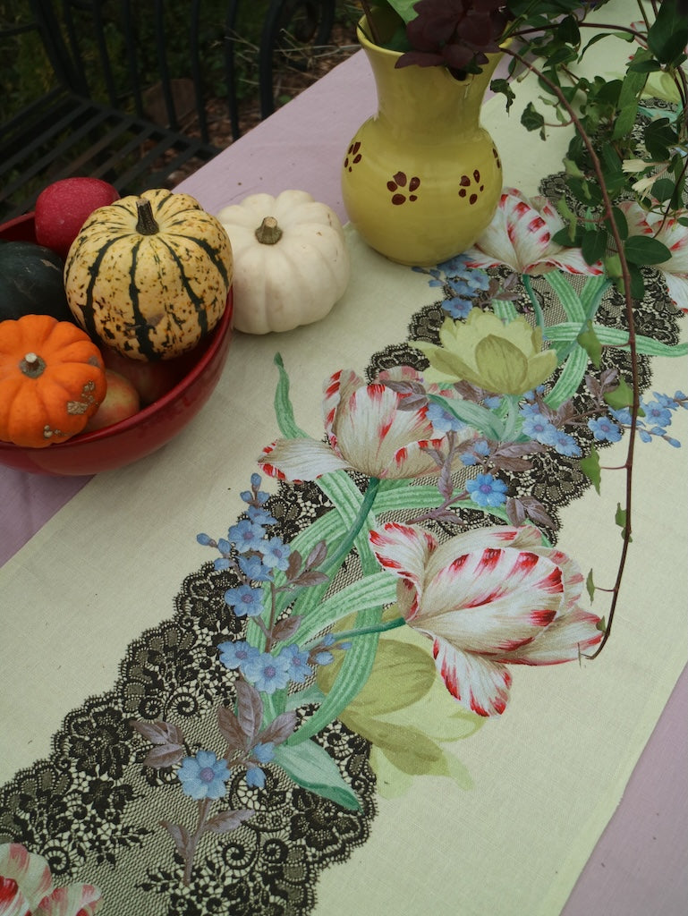 Our latest delightful accessory is a limited edition hand-made table runner made from an English linen union, featuring our strikingly bold 'Bohemian Tulip' design. This is hand-made by us in our workshop in Devon.